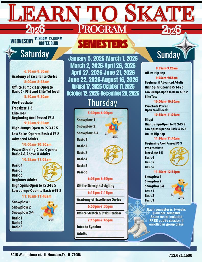 ...into the coolest 2026 Learn to Skate semester EVER! ❄️ We’re rolling out brand-new classes that you’re going to LOVE. Mark your calendars, set your alarms, and get ready to glide into something amazing!